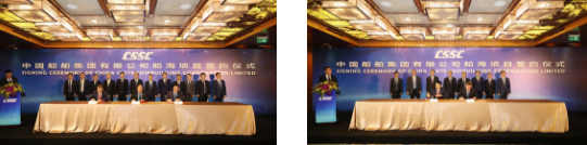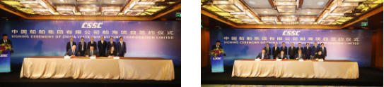 ????主要簽約項目包括:中國船舶集團所屬重慶川東船舶重工有限責任公司與中遠海運(上海)有限公司1.38萬噸不銹鋼化學品船項目;中國船舶集團所屬大連船舶重工集團有限公司與招商輪船VLCC項目;中國船舶集團所屬上海外高橋造船有限公司與工銀租賃21萬噸散貨船項目、外高橋造船與EPS公司20.9萬噸雙燃料散貨船項目;中國船舶集團所屬江南造船(集團)有限責任公司與太平洋氣體公司VLEC項目、江南造船與 SINOGAS86000立方米VLGC項目、江南造船與UECC公司3600車汽車滾裝船項目、江南造船與派格達克公司22000方乙烯船項目;中國船舶集團所屬廣船國際有限公司與斯坦納公司5萬噸甲醇雙燃料油船項目、廣船國際與EPS公司LNG雙燃料蘇伊士油船項目、中國船舶集團所屬滬東中華造船(集團)有限公司與MOL18600立方LNG加注船項目;中國船舶集團所屬武船集團青島北海船舶重工有限責任公司與中國船舶集團所屬中船租賃21萬噸散貨船項目、中國船舶集團所屬中船澄西船舶修造有限公司與國銀租賃85000噸散貨船項目、重慶川東船舶重工與重慶冠達世紀游輪650客游輪項目;中國船舶租賃與 Golar LNG 船舶改裝融資租賃項目、中國船舶租賃與SINOGAS86000立方米VLGC融資租賃項目;中船租賃與山東海運21萬噸散貨船融資租賃項目、中船租賃與Navig 8 成品油船聯合投資協議、中船租賃與新加坡星展銀行VLCC融資協議。
