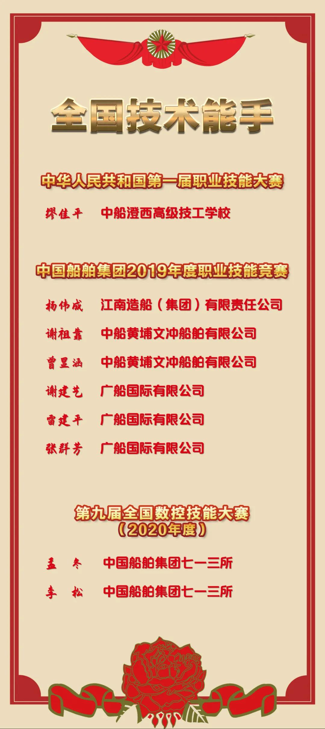船舶高技能人才又獲表彰。中國船舶集團(tuán)“全國技術(shù)能手”再添 9 人!