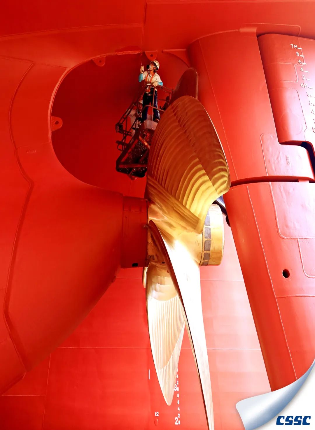 新船出塢前,造船工人對(duì)船舶外貌進(jìn)行補(bǔ)漆,以最靚麗的姿態(tài)迎接船舶出塢。
