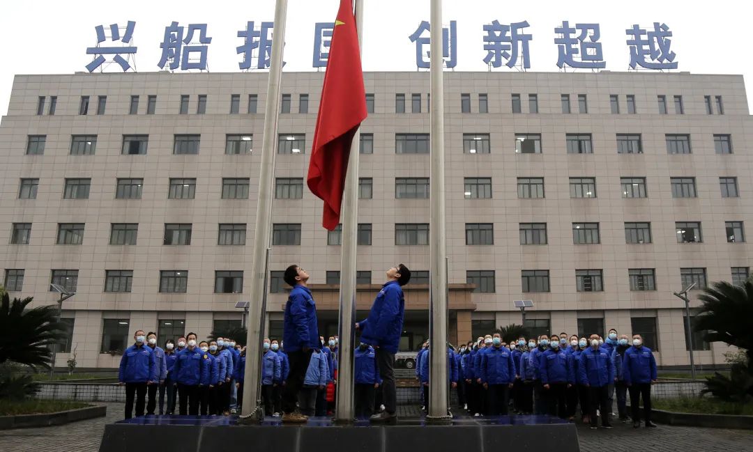 中國(guó)船舶集團(tuán)各成員單位同步舉行了迎新年升國(guó)旗儀式,充分展現(xiàn)了全體中國(guó)船舶人在新的發(fā)展起點(diǎn)上將以更加昂揚(yáng)的姿態(tài)挺進(jìn)新征程,在加快建設(shè)世界一流船舶集團(tuán)進(jìn)程中劈波斬浪、奮楫前行。