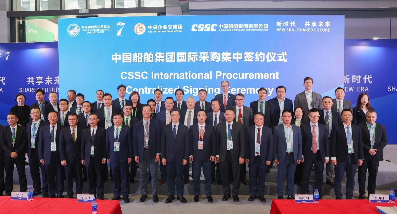 中國船舶集團有限公司黨組成員、副總經理盛紀綱應邀參加第七屆進博會暨虹橋國際經濟論壇開幕式,出席11月6日下午舉行的第七屆進博會國資委中央企業交易團中國船舶交易分團采購集中簽約儀式并致辭。
