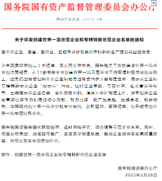 創(chuàng)建世界一流專精特新示范企業(yè)是國務(wù)院國資委貫徹黨中央、國務(wù)院關(guān)于加快建設(shè)世界一流企業(yè)決策部署,深化創(chuàng)建示范、管理提升、價值創(chuàng)造、品牌引領(lǐng)“四個專項行動”的重要內(nèi)容,目的在于加快建設(shè)一批培育一批“專精特新”“小巨人”和單項冠軍企業(yè),在不同領(lǐng)域形成百家以上不同層級的典型示范企業(yè)。