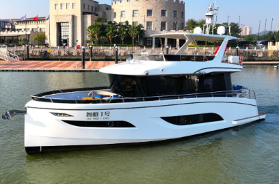 在新技術(shù)、新材料應(yīng)用方面,“智艇1號”采用中國船舶集團旗下科研院所自主開發(fā)生產(chǎn)的碳纖維材質(zhì)飛橋頂和自主開發(fā)的減搖陀螺,配備兩臺441千瓦的高速主機、兩臺15千瓦的軸帶發(fā)電機、一臺17.5千瓦的柴油發(fā)電機,并特別配備了一套由中國船舶集團旗下科研院所自主研發(fā)的50千瓦時鋰電池和岸電接口混合動力系統(tǒng)。