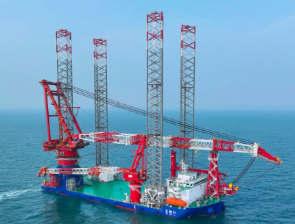 1500噸風(fēng)電安裝船“藍(lán)鯤01”號(hào)配備了1500噸繞樁式主起重機(jī),具備20兆瓦等級(jí)海上風(fēng)機(jī)安裝作業(yè)能力。其樁腿長(zhǎng)度達(dá)到了125米,最大作業(yè)水深可達(dá)90米,是我國(guó)自主研發(fā)設(shè)計(jì)、具有完全自主知識(shí)產(chǎn)權(quán)的第四代風(fēng)電安裝船。